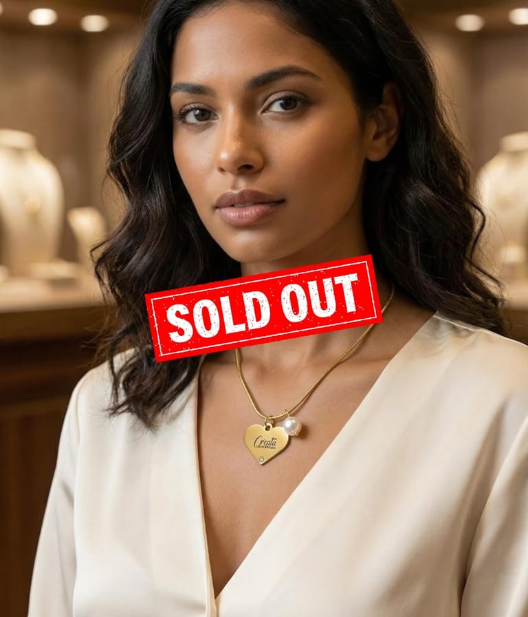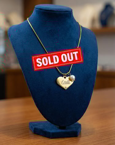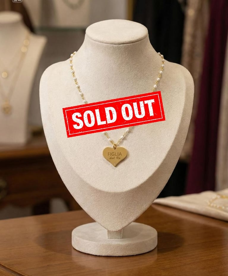 Descrizione: Collana dorata con ciondolo a forma di cuore, swarovski e perla