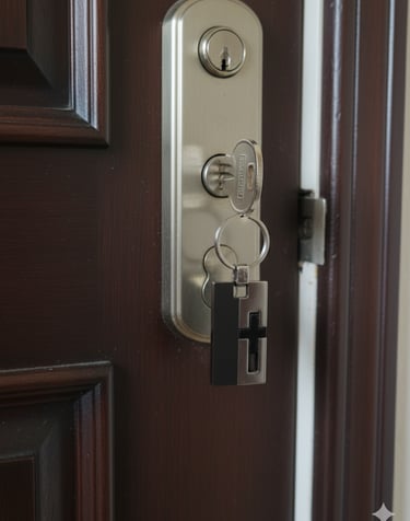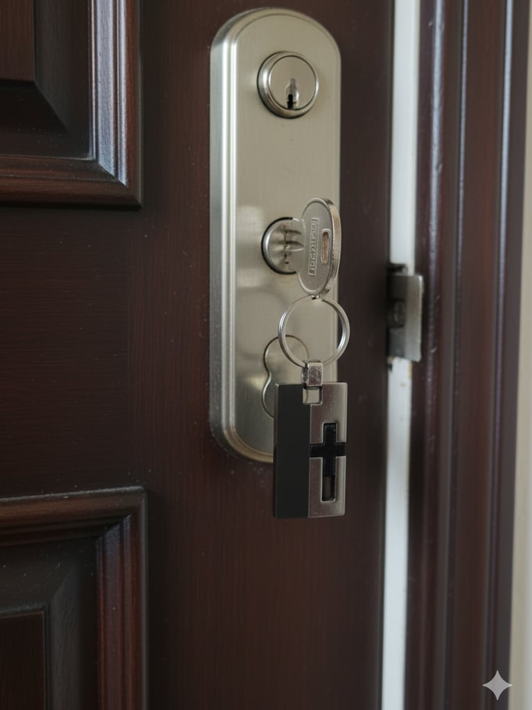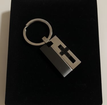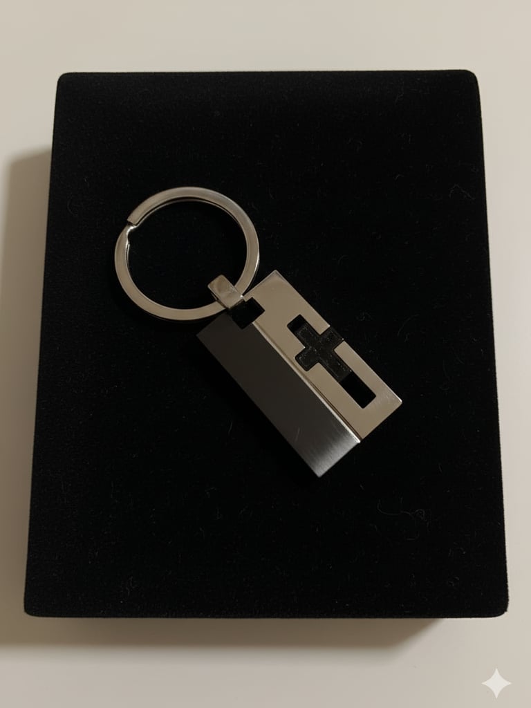 Portachiavi con croce stilizzata e moderna in metallo lucido argentato