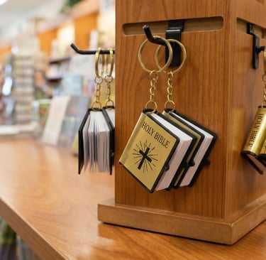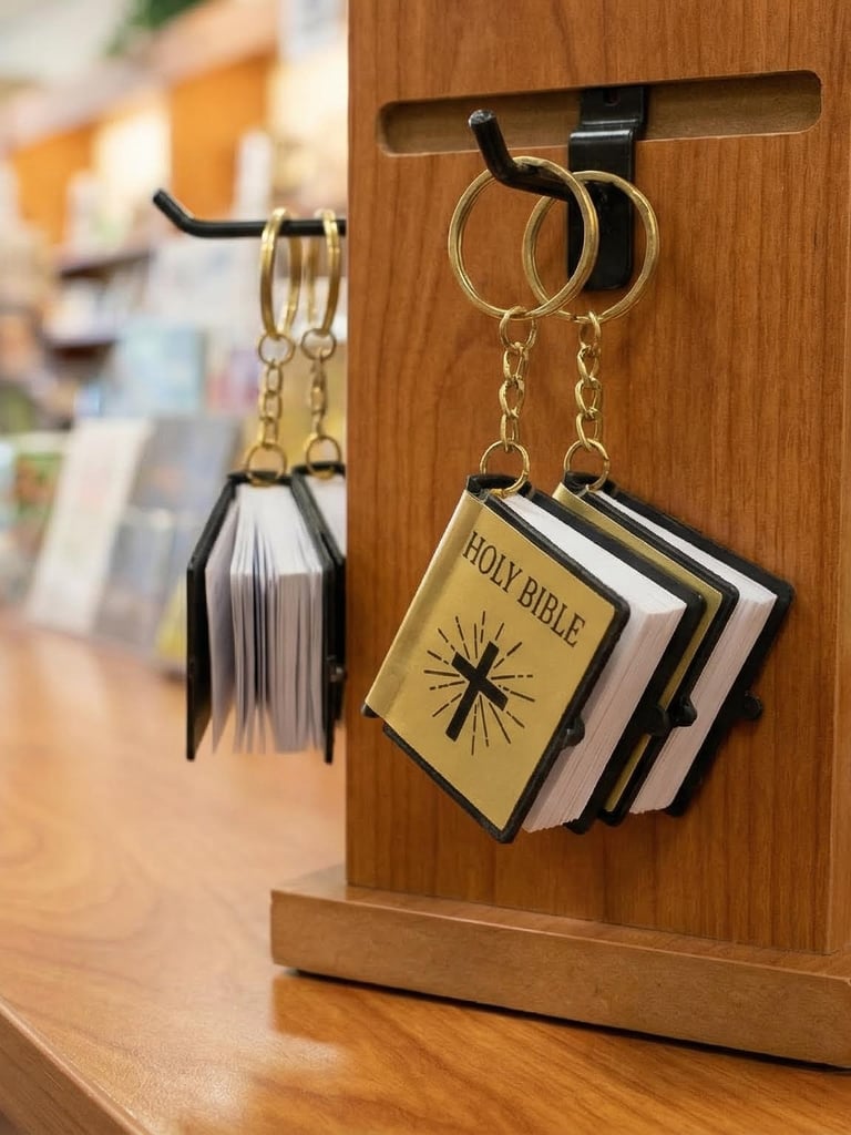 Mini portachiavi con ciondolo a forma di Bibbia include paginedi carta con passaggi biblici