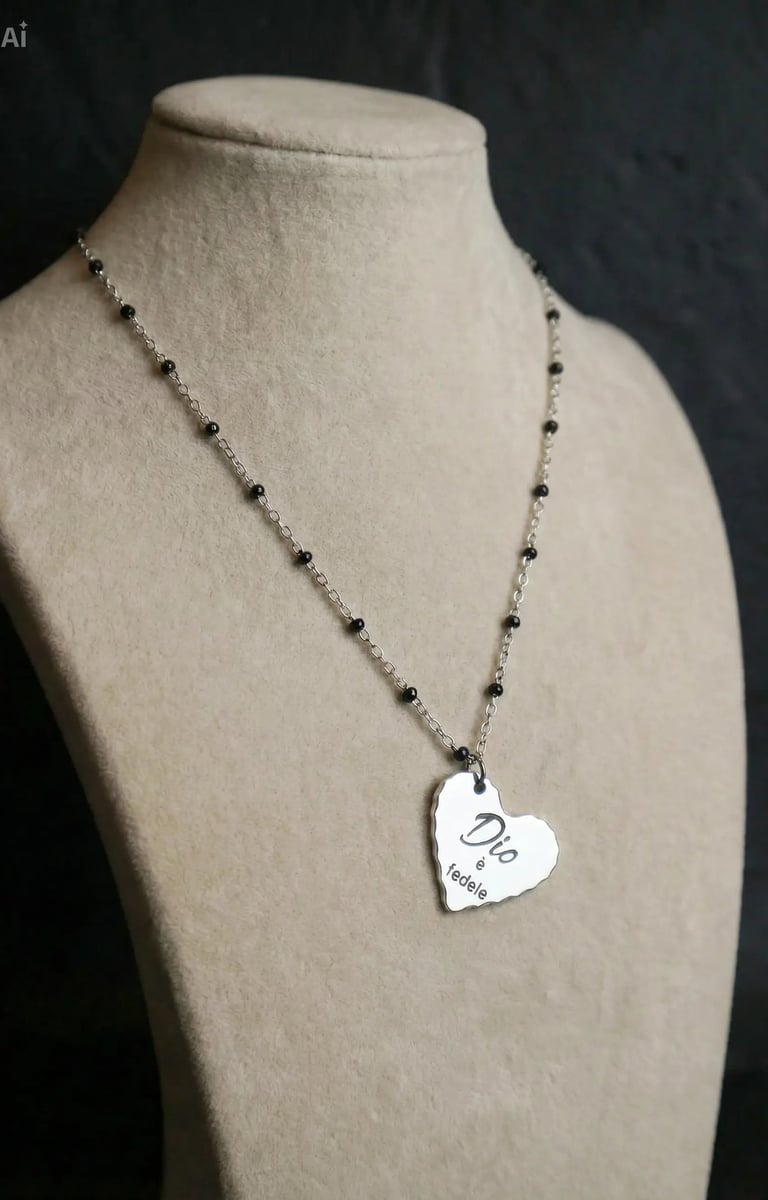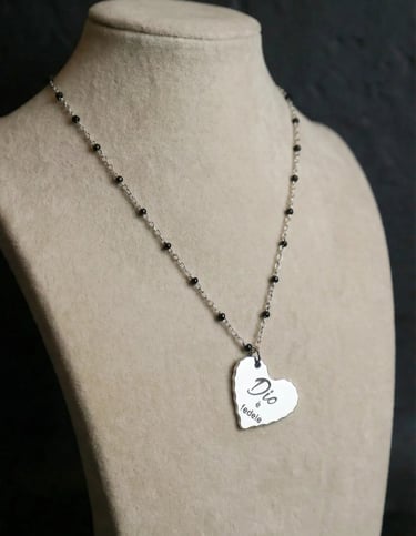 Descrizione: Collana a sfera con piastrina rettangolare incisa
